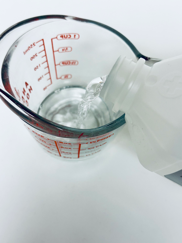 Measure ½ cup of distilled vinegar and pour into the spray bottle.