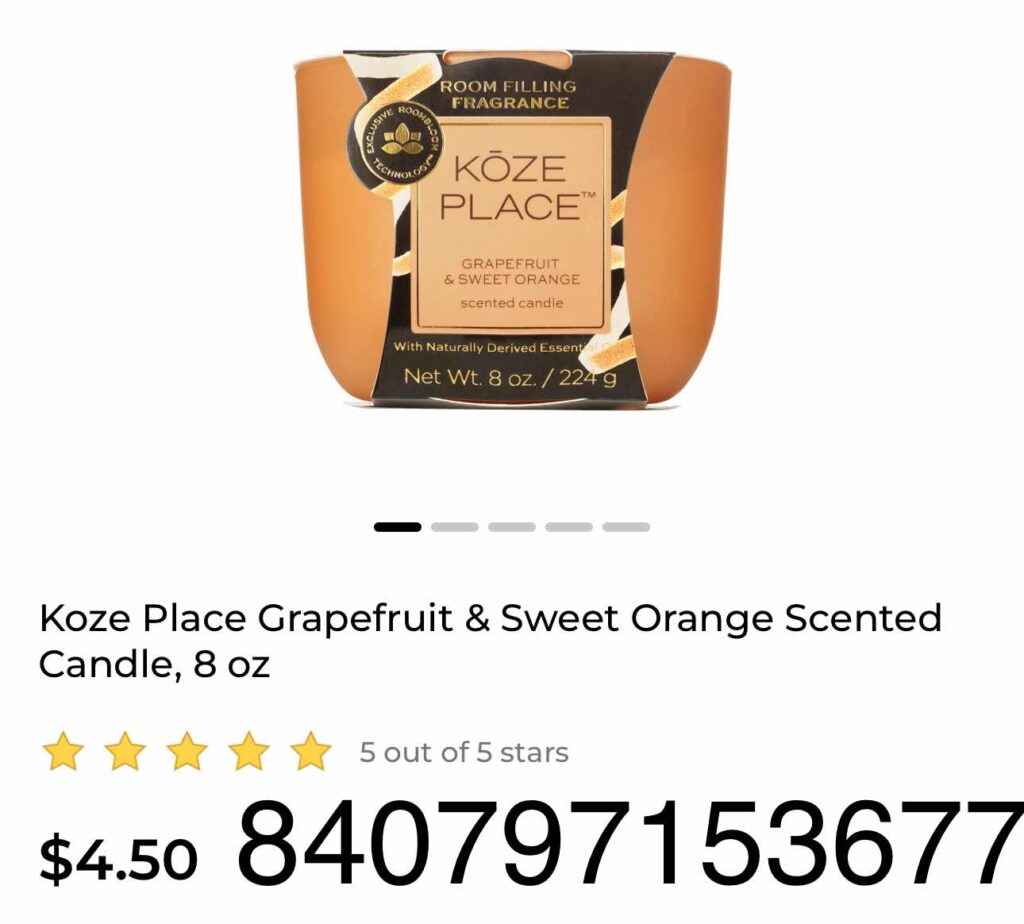 - Koze Place Candle Grapefruit 8oz
