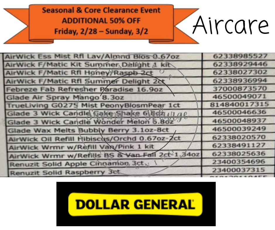 Dollar General Clearance Sale 02/28-03/02; Here are your air care visuals for the Dollar General Clearance Sale