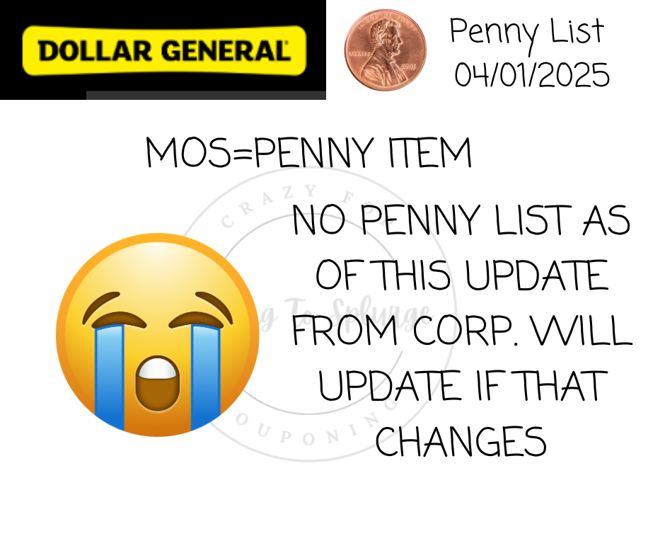 Dollar General Penny List Tuesday, April 01, 2025 (04/01/2025)