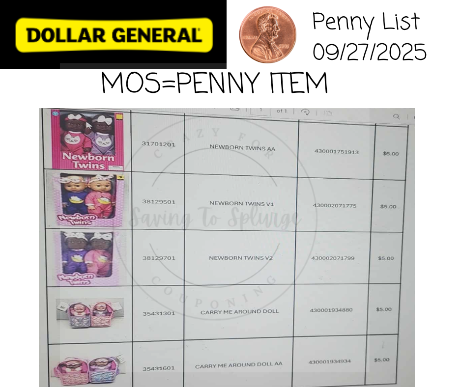 Here is your current Dollar General Penny List Tuesday, September 30, 2025 (09/30/2025)