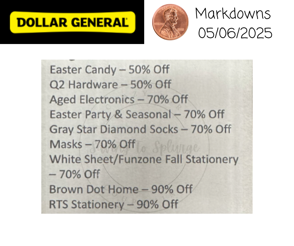 Here is your updates to the Dollar General Clearance Cycle for Tuesday, May 6, 2025 (05/06/2025)