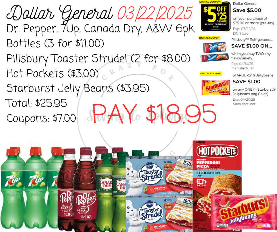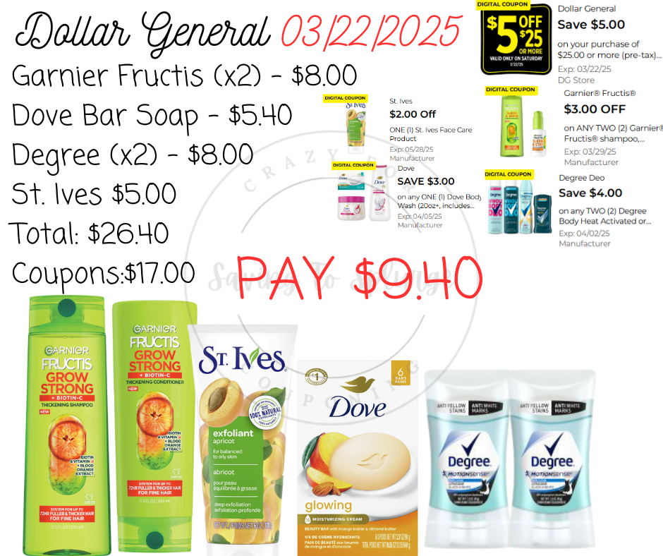 Here are your Dollar General $5/$25 Scenarios for 03/22/2025