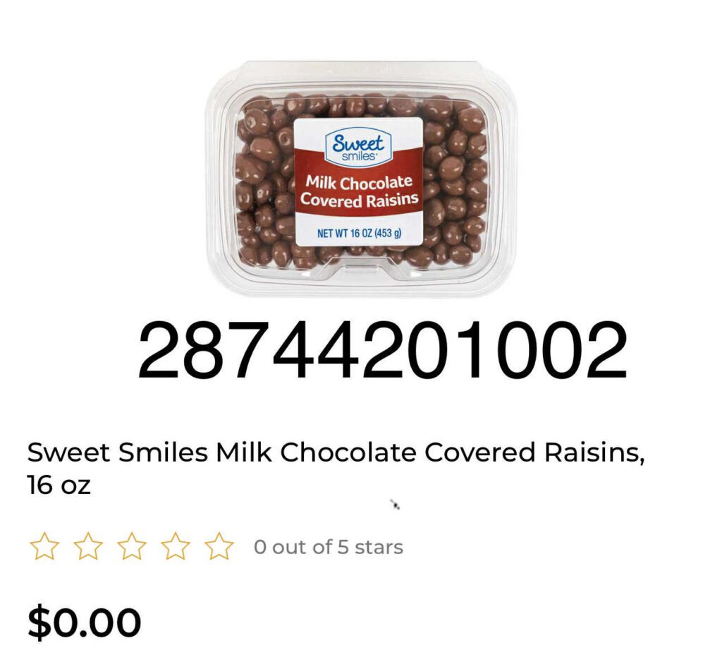 UPC: 44000081522 - Sweet Smiles Milk Chocolate Covered Raisins, 16 oz