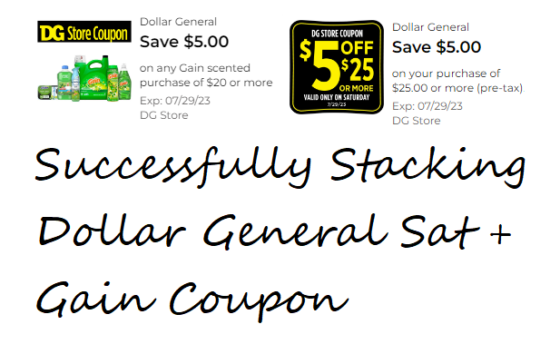 Recently we have seen a change in the way the new register systems are stacking the Dollar General Saturday digital coupons and the Gain Coupon. We are seeing more and more new systems stack these coupons, making Saturday's a very successful shopping day at Dollar General.