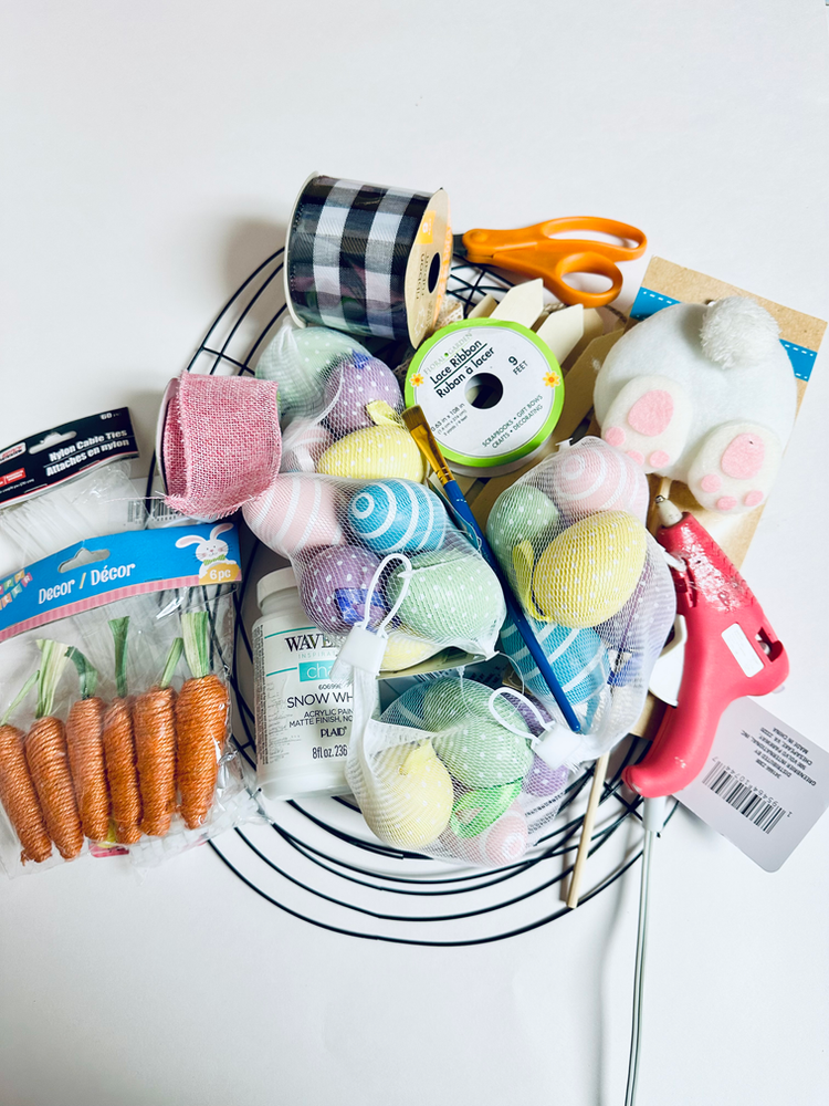 Supplies Needed For Your Dollar Tree Easter Egg Bunny Butt Wreath