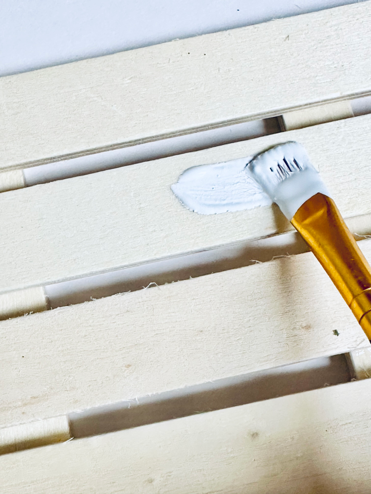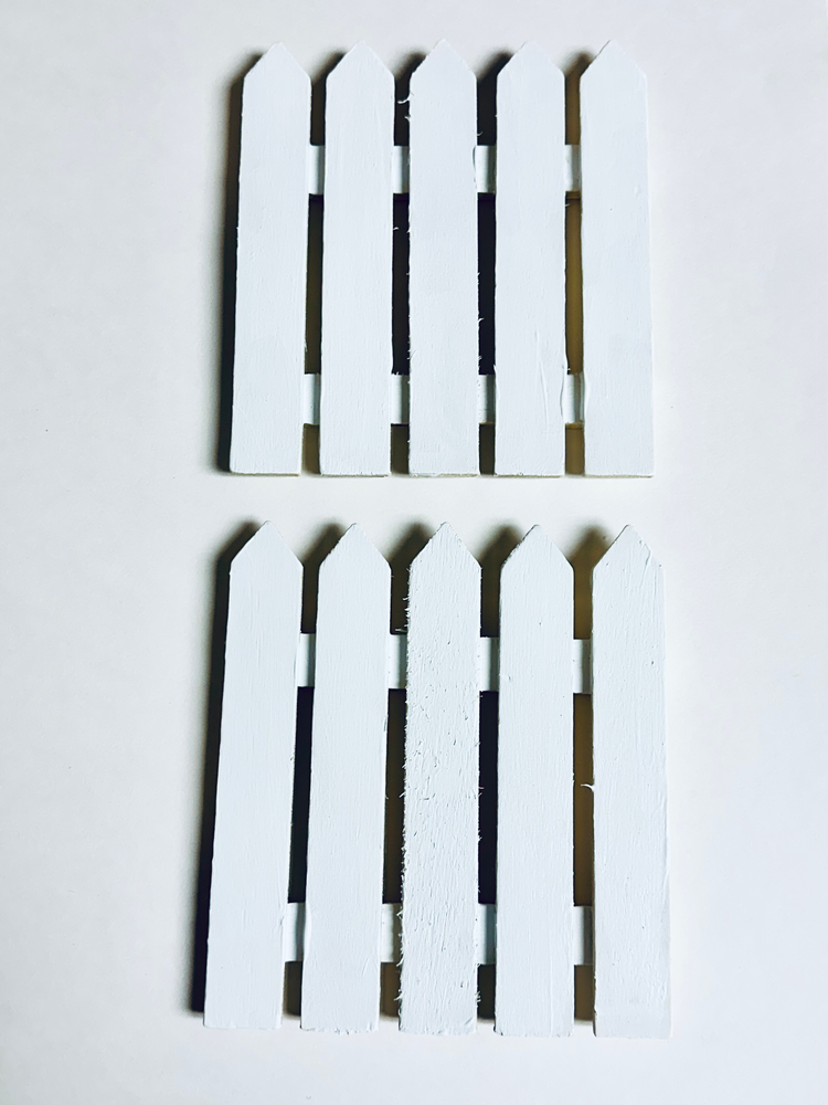 Start by painting your fence pieces with the white paint (I used chalk paint and did 2 coats)