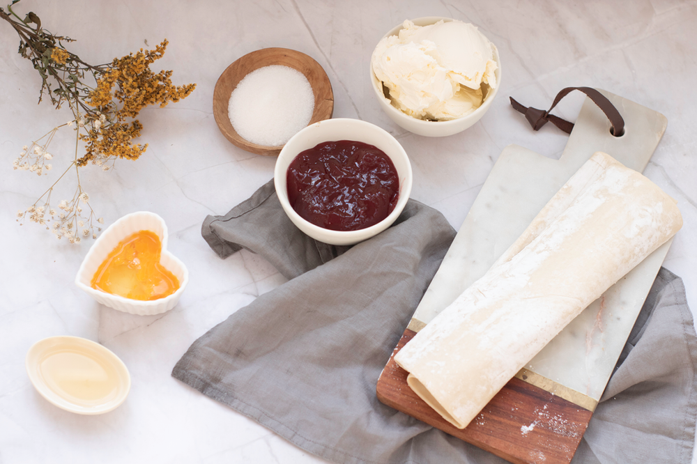 · Roll out the puff pastry sheet on a lightly floured surface. Using heart-shaped cookie cutters, cut out heart shapes. Alternatively make a stencil out of cardboard and use that to cut out the hearts.