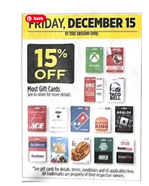 Here is some of the best gift card deals for the week of 12/10-12/16