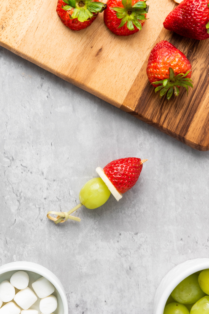 Finish off the kabob by adding a mini marshmallow to the tip of the strawberry for the pom-pom on the Santa hat.