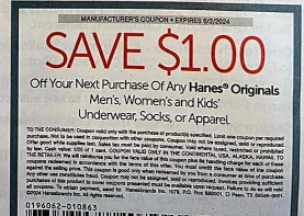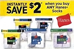 Buy 1 Hanes Socks @ $7.75; $2.00 Comes Off Instantly. Then use the $1.00 off Hanes coupon from the 04/07 SAVE Makes final price $4.75 per pack.