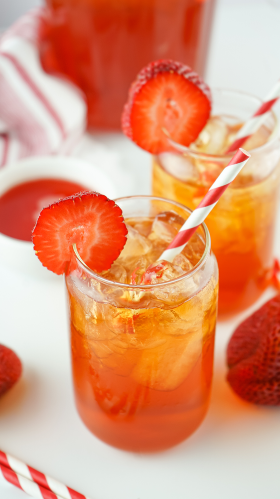 Intro: Strawberry Sweet Tea is the drink you never knew you needed. Bursting with fresh strawberry flavor and, of course, that classic sweet tea we all know and love. Easy and quick!