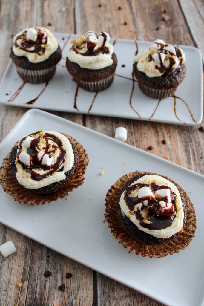 - Assemble: Frost cupcakes, drizzle fudge, and garnish as desired.