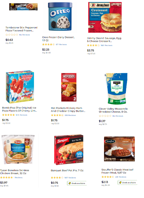These are just some examples of frozen food you may see in your app or online that may be half off. Remember that not all stores discount the same items so this is a YMMV situation.