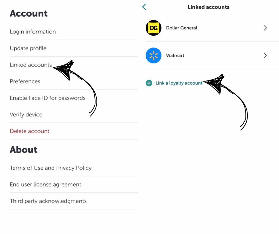 - Select “SETTINGS” and find Dollar General, Go To Linked Accounts. Choose Link Loyalty Account.