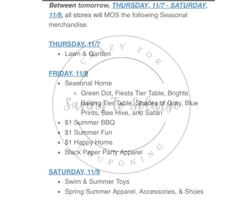 There will be new items marked down each day; MOS; Is Move Off Shelf or Move Out Of System depending on what your DM refers to it as. SHORT VERSION, its a penny item.