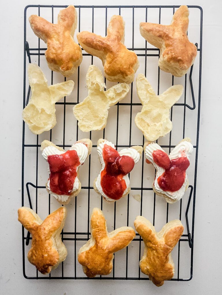 3. Bake these for 8-10 minutes until the tops are golden brown and the pastry bunnies have puffed up.
