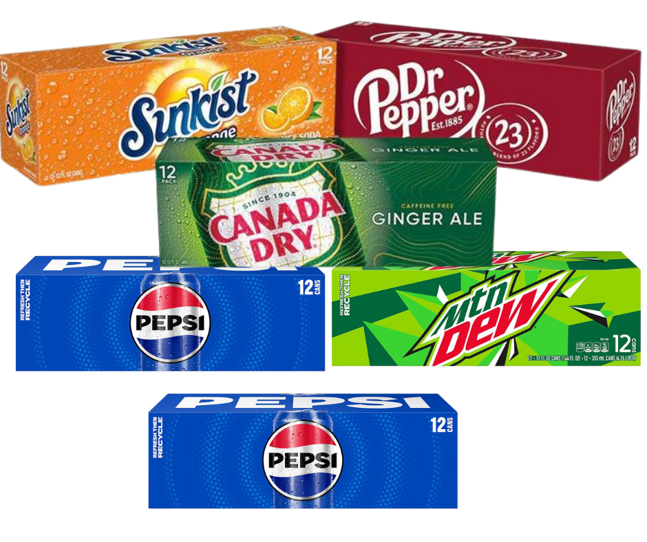 - (3) Pepsi or Mountain Dew 12-Pack Cans – 3 for $13.00