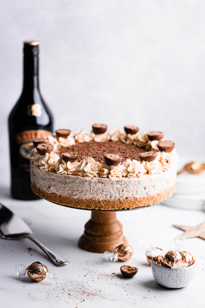 This incredibly creamy and decadent no-bake Baileys cheesecake is an extra special treat for adults only! The addition of Irish cream liquor not only enhances the flavour, but it also makes the texture of the cheesecake even more creamy. As if that wasn't delicious enough, the cake is crowned with Baileys infused whipped cream, grated chocolate and Baileys truffles!