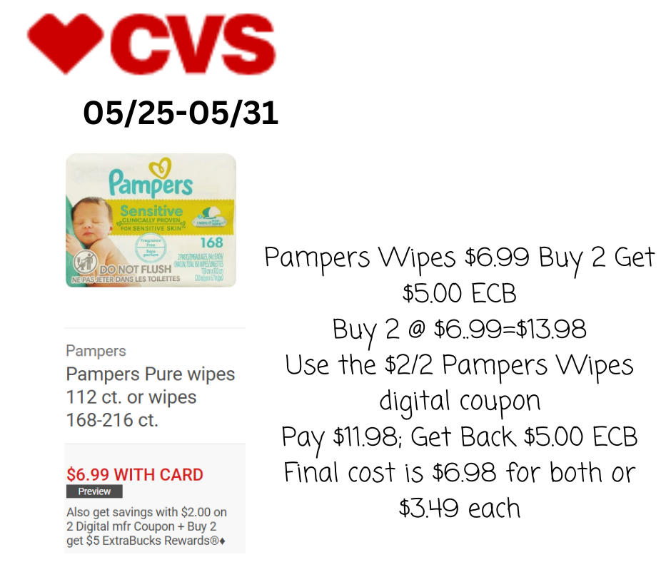 • Use $2/2 Pampers Wipes Digital Coupon (clip in the CVS app)