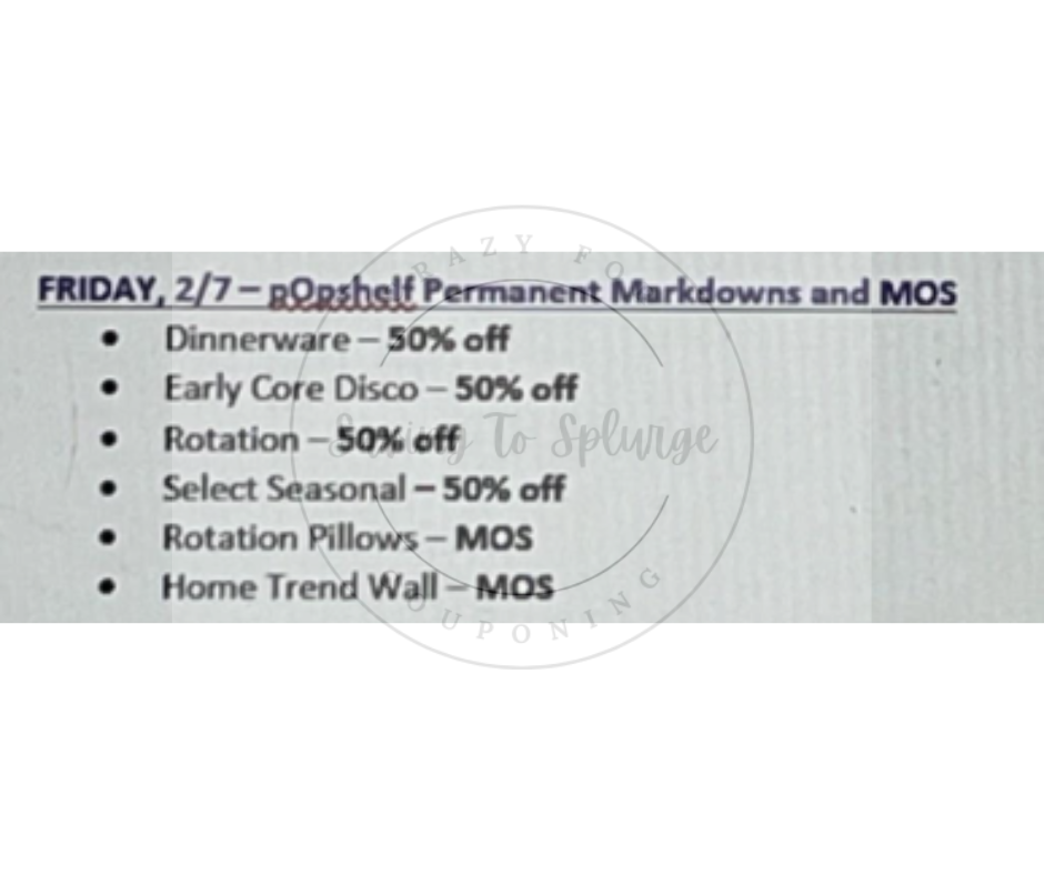 Please note that while these items are expected to be discounted starting February 7, availability may vary by location. It’s always a good idea to verify prices using the pOpshelf app.