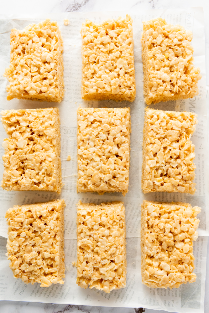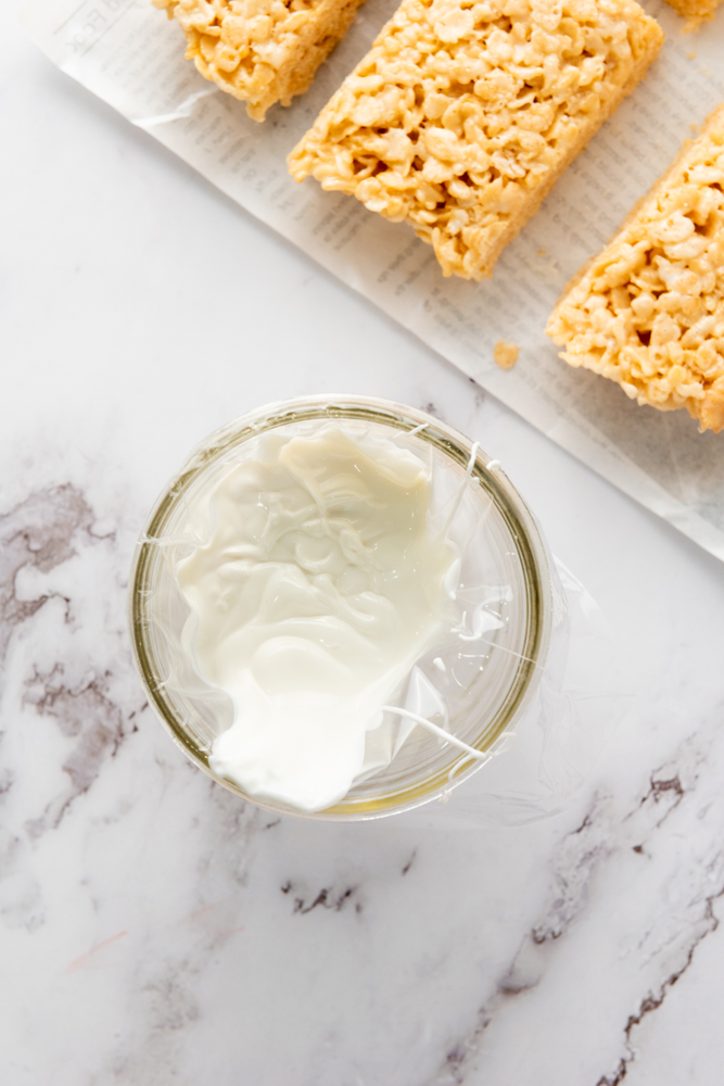 · Let the Rice Krispie treat cool and set in the refrigerator for at least one hour.