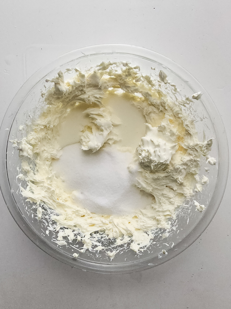 Add the sugar and heavy cream and blend again until combined.