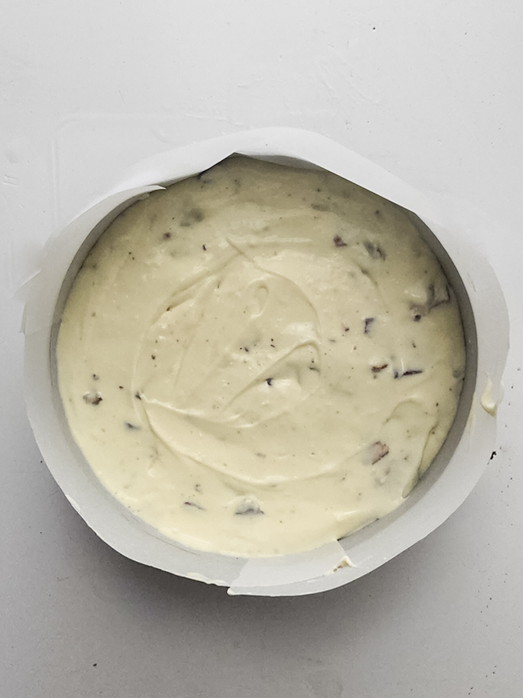Prepare a springform pan with parchment paper.