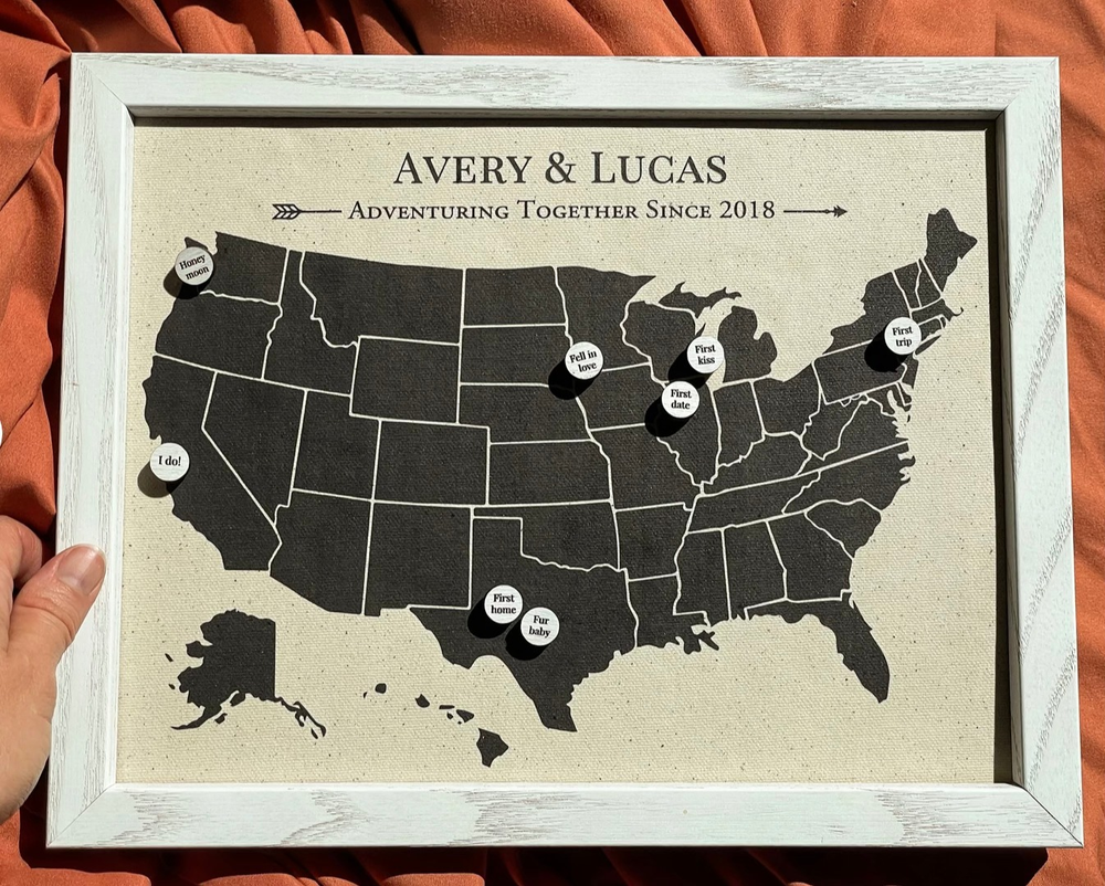 This adorable, handmade map is the perfect Valentine's Day gift! It comes with pins that you pick. Examples include: "first date," "honeymoon," "first kiss," etc.