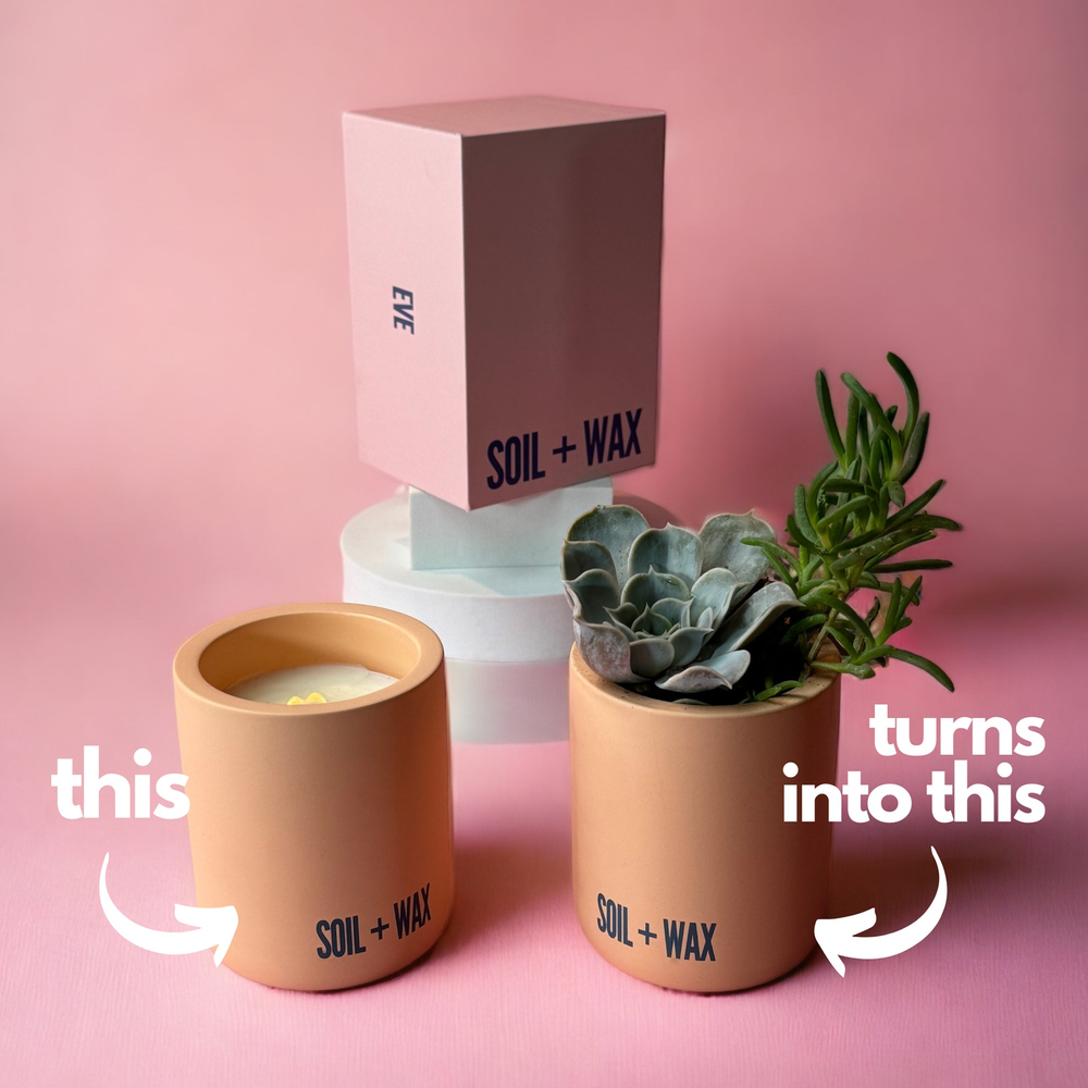 Experience the unique combination of a candle and a succulent growing kit with the SOIL + WAX candle.