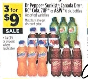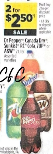 Dr. Pepper, 7UP, Canada Dry, A&W, Sunkist, RC Cola (2L Bottles)