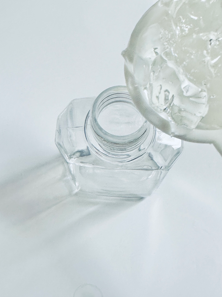 Then measure 2 Tablespoons of pure aloe vera gel and put it into the spray bottle (it will need a little help getting into the spray bottle as the hole is typically small)