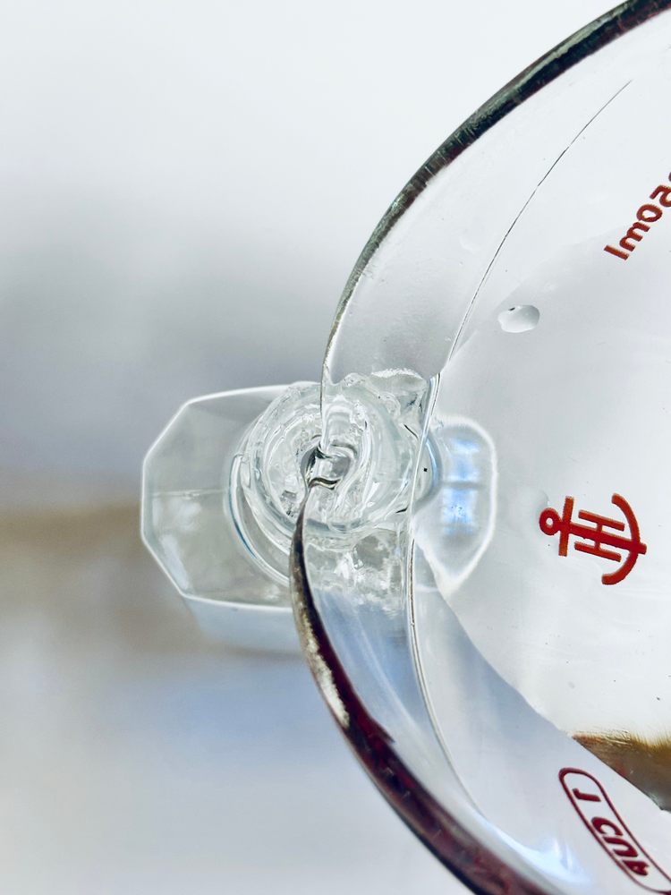 Fill the remainer of the bottle with water (you can also use distilled water but I just used regular tap water) This is easier to pour into the mini spray bottle using a measuring cup as it has the pour spout.