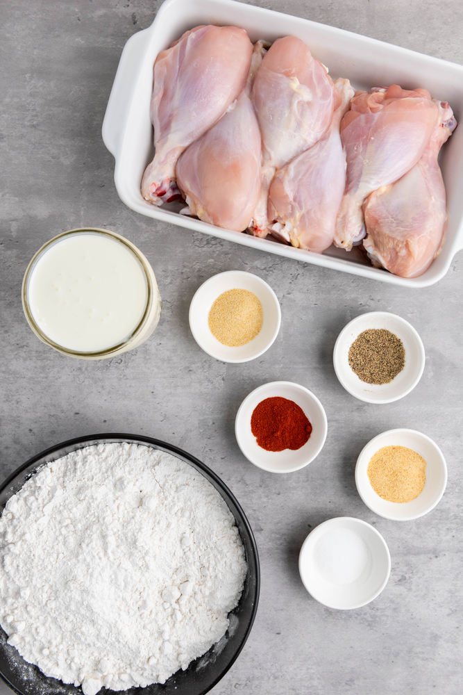 · Place them in a bowl and pour buttermilk over them. Add half of the salt and pepper. Make sure the chicken is coated, then cover and chill for at least 2 hours.