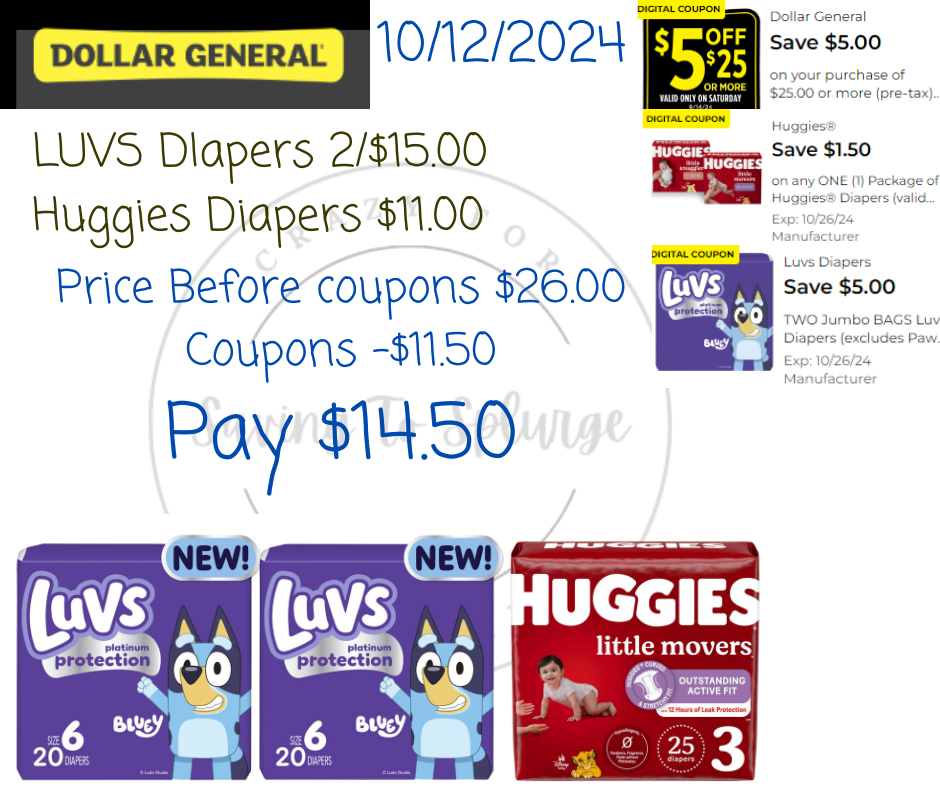 Hey, savvy shoppers and busy parents! Here’s an amazing deal that will have you running to Dollar General Saturday 10/12, you can score Luvs and Huggies diapers for as low as $4.84 per pack—yes, you read that right! Let’s break down how you can save big on these baby essentials.