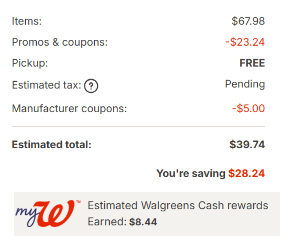 - $8 Walgreens Cash earned