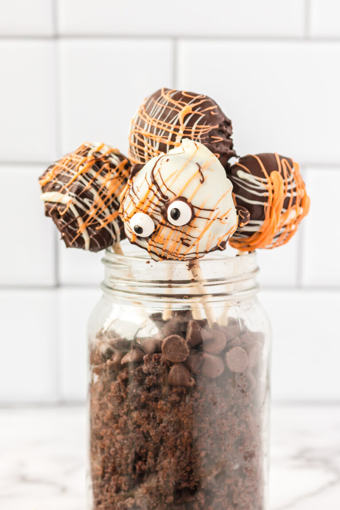 These Halloween Cakesicles are super fun to put together and will bring a good amount of whimsy to any Halloween celebration. Break out the Halloween sprinkles and candy googly eyes to add loads of character to these cake pops.