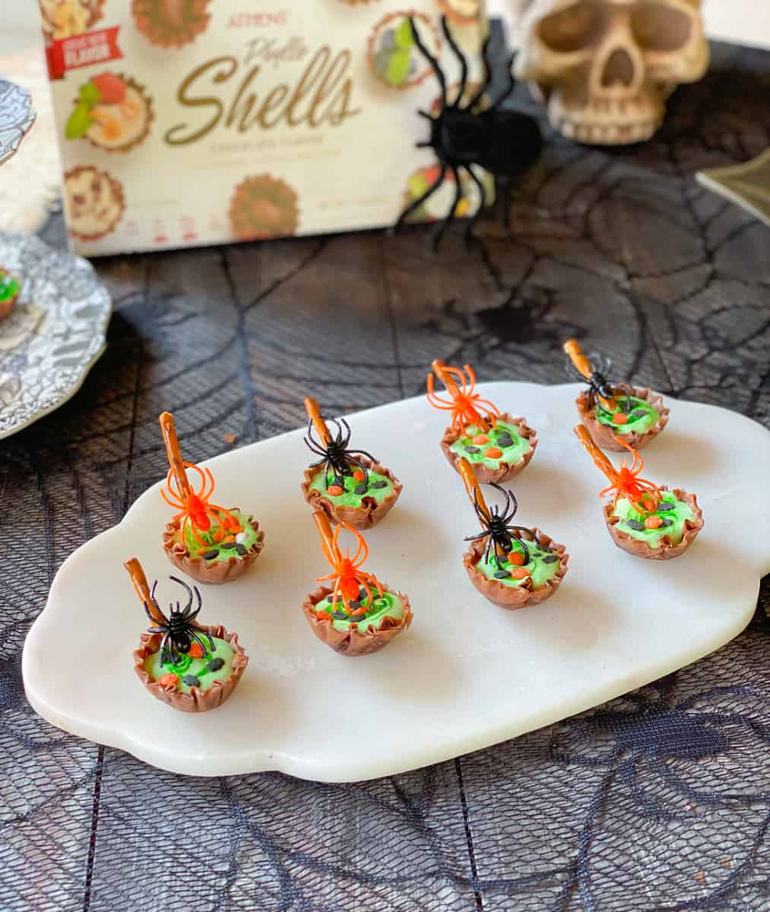 These witches cauldrons are such a fun and delicious Halloween treat that is NO BAKE! They are perfect for kids to make and eat and can be assembled in just under 10 minutes!