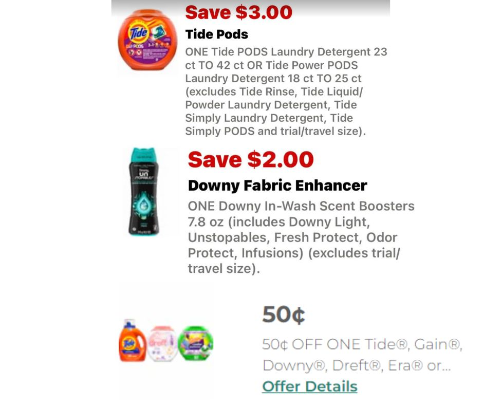 SAVE $0.50 ONE Tide®, Gain®, Downy®, Dreft®, Era® or Bounce® product (excludes Ariel®, Ace® and trial/travel size) PRINTABLE