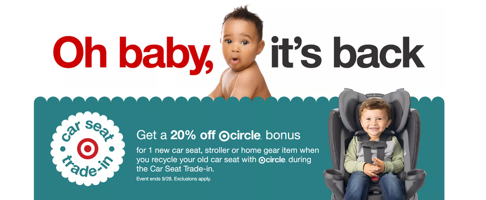 It’s easy: You don’t need to worry about the condition of your car seat. Whether it’s expired, damaged, or just outgrown, Target will take it. All you have to do is drop it off and enjoy the savings!