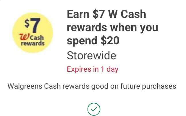 Booster: Spend $20 earn $7 Walgreens Cash Rewards