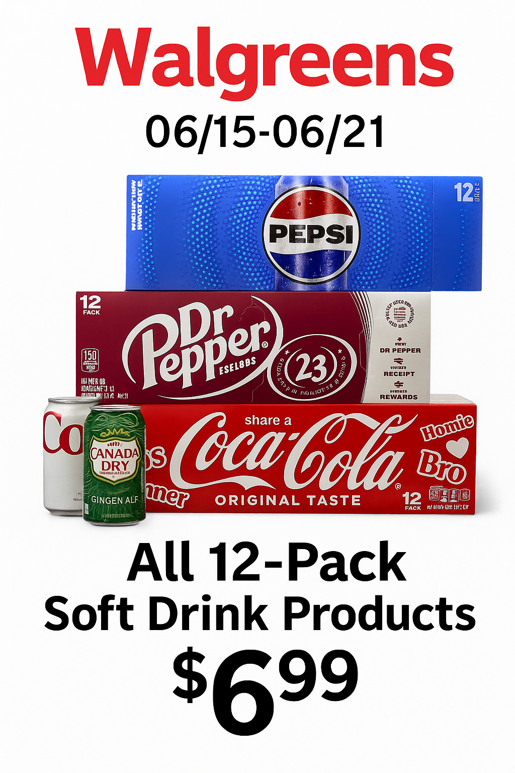 12-Pack Soft Drinks (Pepsi, Coke, Dr. Pepper, etc.)