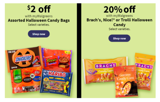 Walgreens and Rite-Aid often have some great deals where you can combine sales, coupons, and get store reward's back for buying Halloween Candy. We will def be posting the candy deals weekly.