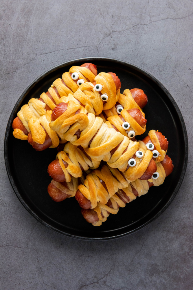 These festive snacks are not only easy to make, but they also add to the overall ambiance of your Halloween party. The sight of these mummified hot dogs will surely impress your guests and get them in the Halloween spirit.